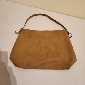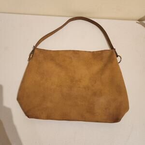 Small Tan Faux Suede Slouchy Purse Shoulder Bag Basket Tote