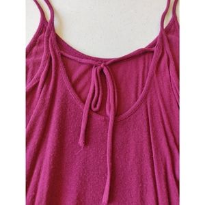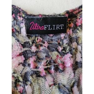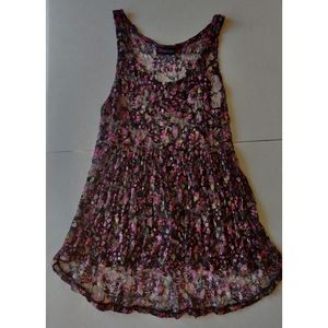 The floral print tank has strings/strips that pop out if you look closely as seen in photo. Not noticable when worn.