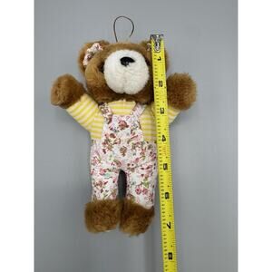 Small Teddy Bear Plush Ornament 7 Inch Stuffed Animal Floral Overalls No Tag