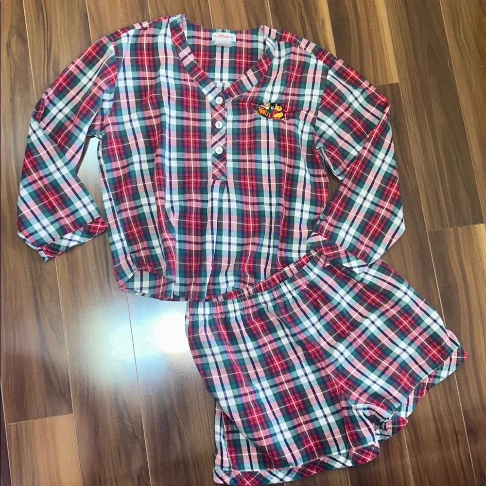 Small The Disney Store vintage 100% cotton plaid pajama set Winnie the Pooh