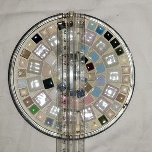 Small, 6 inches in diameter, tile mosaic in multicolor, with silver Toned metal back, no makers mark