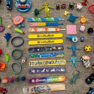 Small Toys Bundle - Balls, Cars, Trucks, Bracelets, Dinosaurs, Chalk Sets, More!