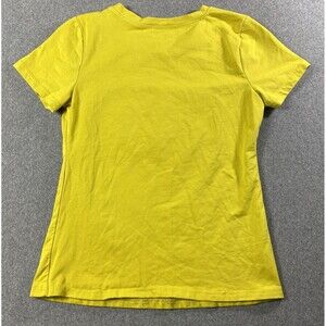 The product is a small, women's T-shirt in a vibrant yellow color with sequin accents. Made from a blend of polyester and cotton, this regular fit shirt is perfect for adding a pop of color to any outfit. The XS size makes it a versatile piece that can be dressed up or down for various occasions.