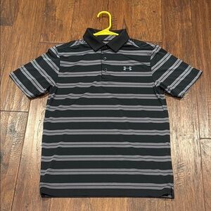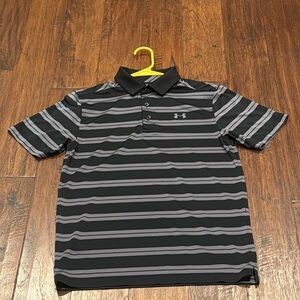 Small Under Armour Men's Polo in Black and Gray Stripes