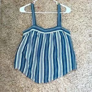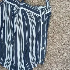 This product is a small, blue and white, striped tank top from Universal Thread. It has buttons down each side. It’s in very good condition.