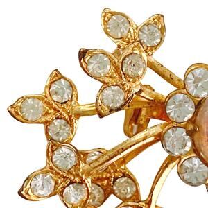 Features: Prong-set rhinestones; domed faux opal cabochon center; floral spray motif