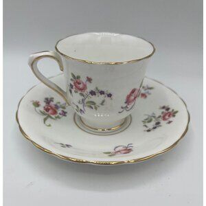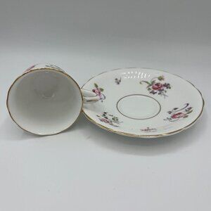Small Victoria China Teacup and Saucer with Roses and Gold Trim