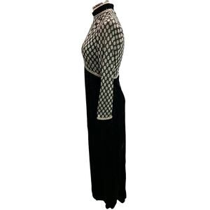 Small Vintage 1970s Black Velet Metallic Dot Gown Long Fitted Bodice