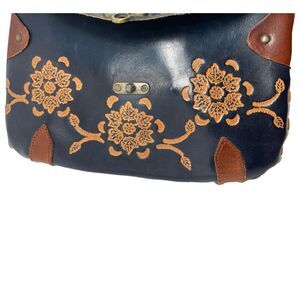 Small Vintage Blue Boho Floral Hand Crafted Tooled Leather Shoulder Bag