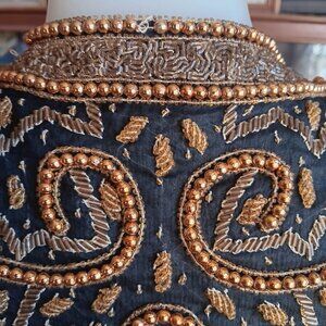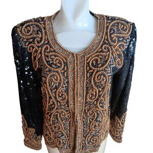 Small Vintage Bolero Jacket Black Gold Beaded Sequin Embroidery Patra