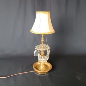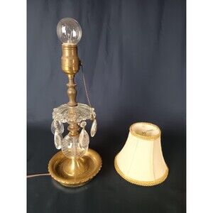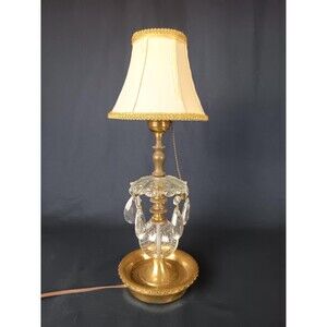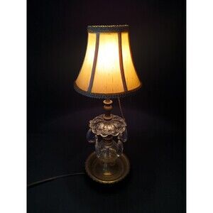 Small Vintage Lamp With Glass Accents And Crystals Table Desk Office Accent Lamp
