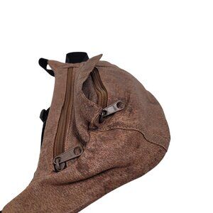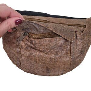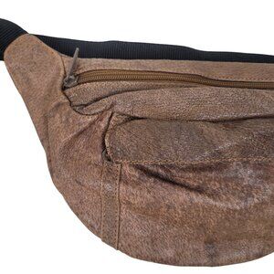 Small Vintage Leather Zippered Waist Bag/Hip Bag Nylon Strap w/Buckle Closure