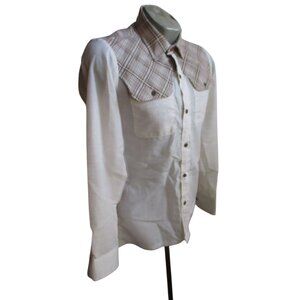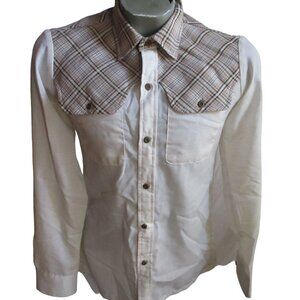 Small Vintage Men's Boho Western Shirt 70's Plaid Top Disco Cowboy H.I.S. button
