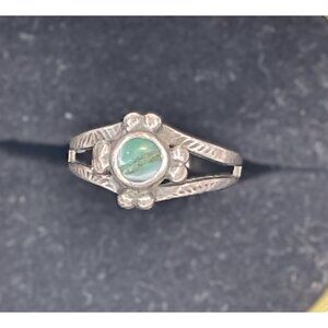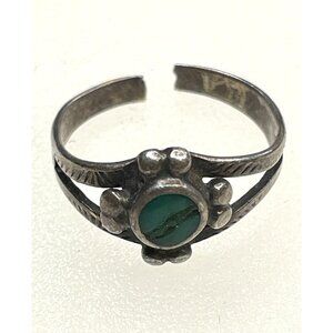 Offered is a Small Vintage Native American Silver Turquoise Ring As Found. Band is split, stone is cracked. Sold As Found for parts, repair or repurpose. Approximately size 3 if not split