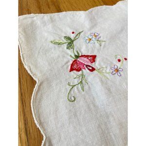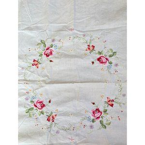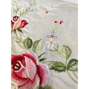 Small Vintage Square Rose Floral Hand Embroidered Alter Table Cloth 32" x 32"