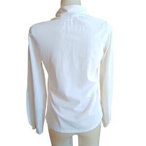 Small Vintage White Long Sleeve Blouse Tie Neck & Elastic Cuffs 1970's Boho 1OF1
