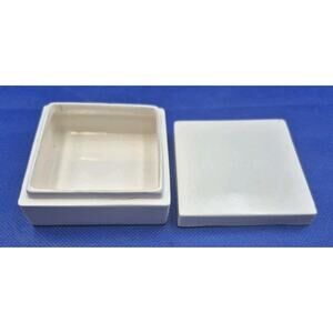 Small Vintage White Porcelain Trinket Box 3x3" Signed