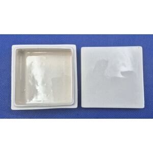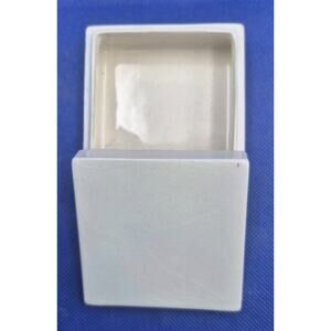This small vintage white porcelain trinket box is a charming addition to any decor collection. With a solid square shape and glossy finish, this original piece is signed "HG" and features a lid. Measuring 3x3 inches, it is perfect for storing small trinkets or jewelry. Easy to clean with warm water, this versatile box can be used for all occasions and is sure to add a touch of elegance to any space.