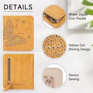 PU leather makes this small wallet for women glossy, soft, tear-resistant and easy to clean. Available in a range of colours and patterns. The rfid wallet with Cute Hollow out Shining Butterfly is a perfect gift for women.
