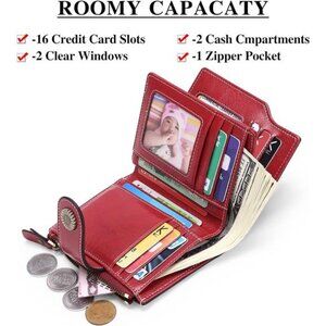 🧿②【FUNCTIONAL DESIGN】 Small wallet for women with 16 RFID BLOCK credit card slots, 2 SIM card slots, 4 Clear Windows( 2 of them are removable),1 Side Zipped Pocket for coin, keys; 2 Full-length Bill compartments,This wallets for women provides a clever solution to your everyday needs