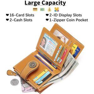 The small wallets for women come with 10x card slots, 6x short compartments, 2x ID windows, 2x cash slots, 1x zipper pocket, and plenty of storage to hold up your daily essentials