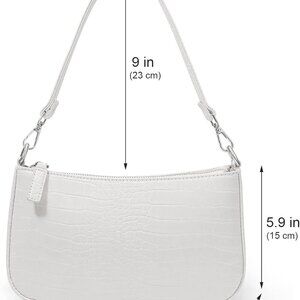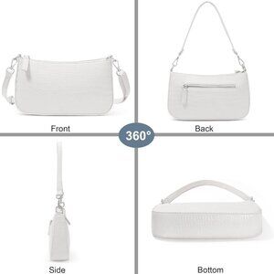 Small White Croc Pattern Nylon Shoulder Bag with 2 Removable Straps Compact Cros