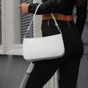 Small White Croc Pattern Nylon Shoulder Bag — A chic, versatile crossbody for daily style and function.