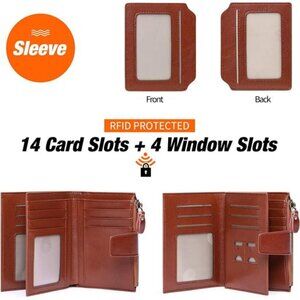 🧿SMALL BUT ROOMY👍--5.12 x 3.94 x 1.18" (13 x 10 x 3 cm). With 14 rfid blocking credit card slots, 2 SIM card slots, 4 visible windows ( 2 of them on the removable cardholder), 1 Side zipped pocket for coins and keys, 2 Full-length bill compartments. Perfect for ladies who loves carrying a small wallet into handbag purse or coat, and provide great convenience to your life!