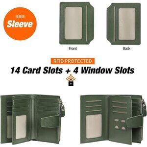 🧿SMALL BUT ROOMY👍--5.12 x 3.94 x 1.18" (13 x 10 x 3 cm). With 14 rfid blocking credit card slots, 2 SIM card slots, 4 visible windows ( 2 of them on the removable cardholder), 1 Side zipped pocket for coins and keys, 2 Full-length bill compartments. Perfect for ladies who loves carrying a small wallet into handbag purse or coat, and provide great convenience to your life!