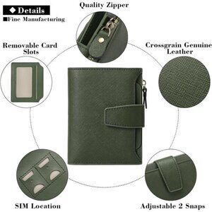 Small Women Wallet Genuine Leather RFID Blocking Bifold Zipper Pocket