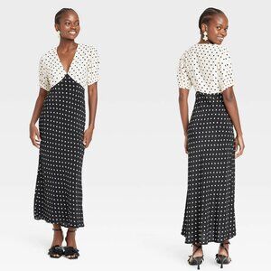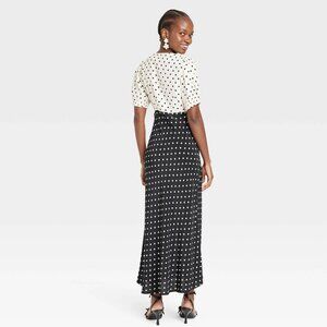 Small - Womens Crepe Puff Short Sleeve Midi Dress - A New Day - Polka Dots
