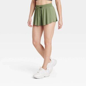 Small - Womens Double Layer Run Shorts 2.5" - JoyLab - Olive Green