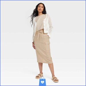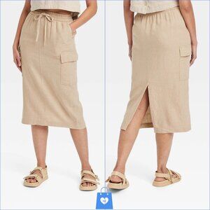 Small - Womens Linen Midi Skirt - A New Day - Tan