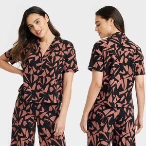 Small - Womens Linen Short Sleeve Button-Down Camp Shirt - A New Day - Brown