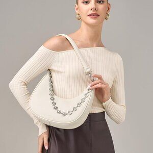 Small Women's PU Leather Crescent Hobo Bag Silver Chain Multiway Casual