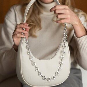 Features: This cute crescent-shaped bag features a layered design with silver chains over PU straps, instantly elevating your look. It comes with two stylish straps— a sophisticated leather one for a classic vibe, plus a trendy metallic silver chain strap for when you want a more modern touch. Perfect for work, casual days, or nights out, and big enough to keep your essentials organized without feeling bulky.