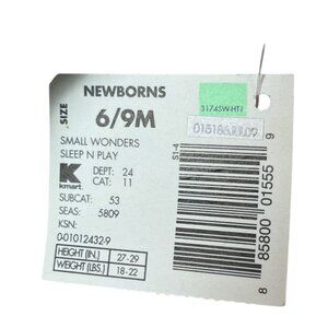 Small Wonders Newborn Blue Striped Bear Sleep Play Footed Pajamas 6/9M - New