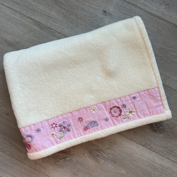 Small Wonders Yellow Butterfly Ladybug Flower Embroidered Blanket 30x40in