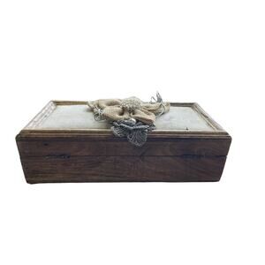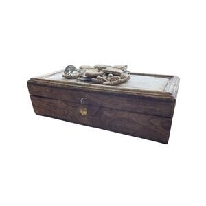 Small Wooden Jewelry Box with Flowers 9.5"x5" Craft Box Storage Decorative