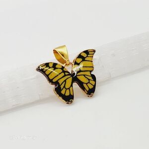 Small Yellow Black Tibetan Gold Enamel Mixed Butterfly Pendant 0.8"