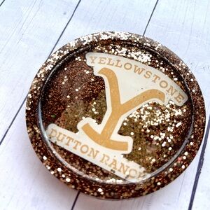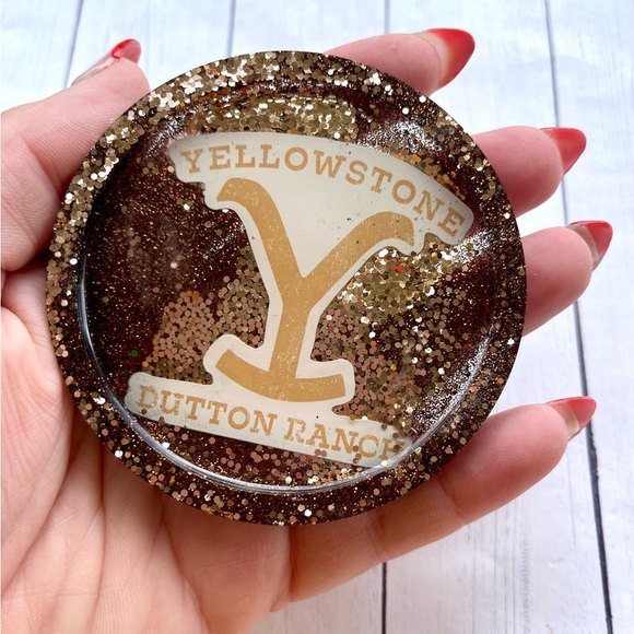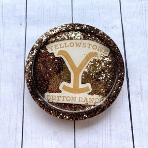 Small Yellowstone Dutton Ranch Resin Coaster – Handmade Glitter Ranch Logo