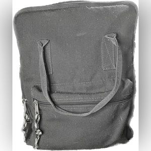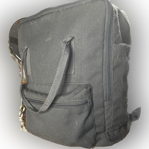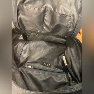 Navy blue back pack with seven pockets , 2 on the sides, one on front, large one and there’s pockets within bag. Great for school and travel.