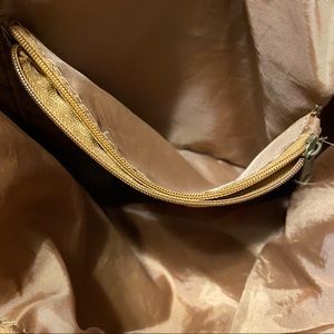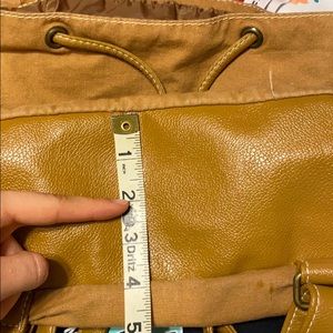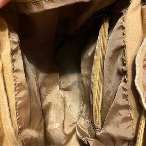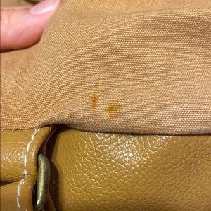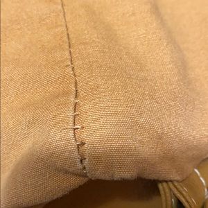Great condition! The flaws are the worn magnet fasteners (can’t be seen when closed), a small stain on the back of the bag in the bottom left, and a few stitches coming undone. 1 large compartment - 2 small pockets on the inside - 2 small pockets on the outside. 11” top to bottom