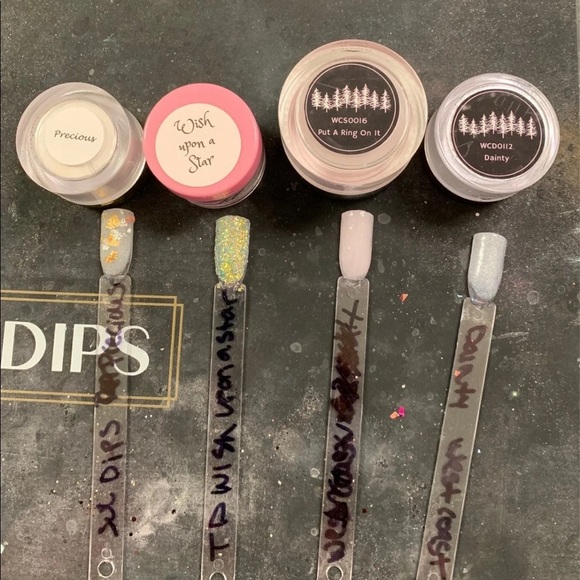 Great small batch nail dip powders. Flakes, shimmers and glitters! Precious is no longer available it sold. Just the three dips.