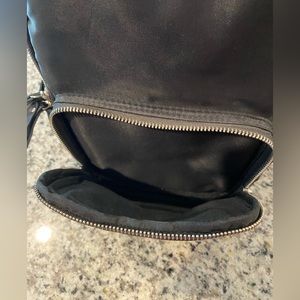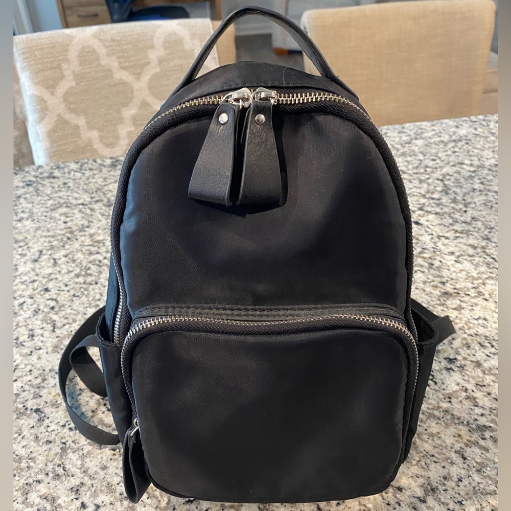 @pavan69 it’s nylon w faux leather handle. Not sure exact height but I can check later today if needed. It is petite but fits a lot