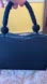 Small black evening purse w/black bead circle ball detail on handle & gold snap