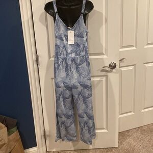 Small blue watercolor palm alternative pants suit