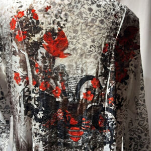 Small cardigan with bleeding hearts swords and cardinals in print nwt