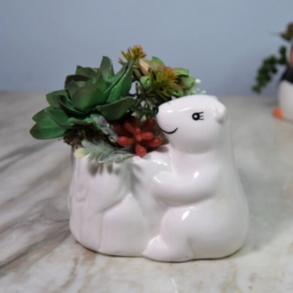 Small ceramic polar bear planter with Sola wood with hand-painted sola wood succulents, Thanksgiving, Christmas, YEAR-ROUND, hostess, teacher gift or just to cheer up your desk or corner of your house!