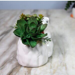 Small ceramic polar bear planter w/Sola festive hand-painted Sola succulents